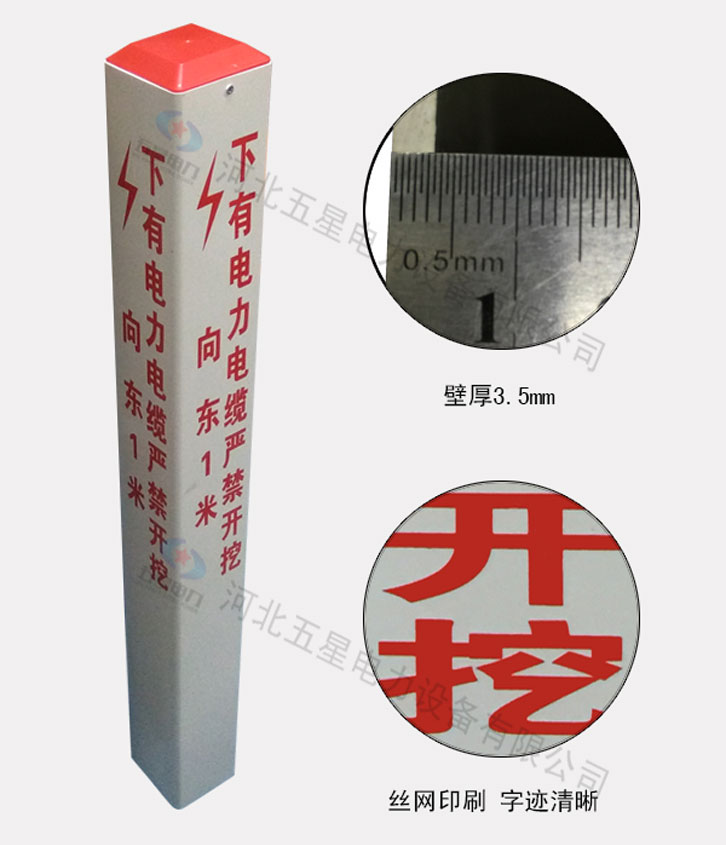 塑鋼標志樁采用塑鋼材質制成,也稱為pvc標志樁,樁體為白色,常規(guī)規(guī)格為100mm*100mm、150mm*150mm。塑鋼標志樁材質輕便、彈性好、耐酸堿、耐腐蝕、抗老化性能好、安裝運輸方便,是警示地下管線的標識產品,能夠清楚的標明管線的鋪設方向,便于大家區(qū)分不同的管線走向。