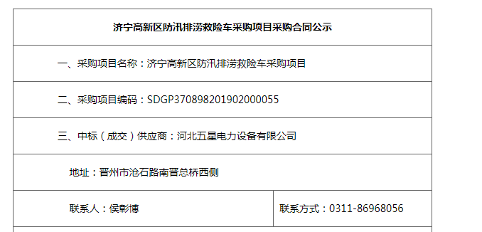 熱烈祝賀河北五星濟寧高新區防汛排澇救險車采購項目一舉中標!